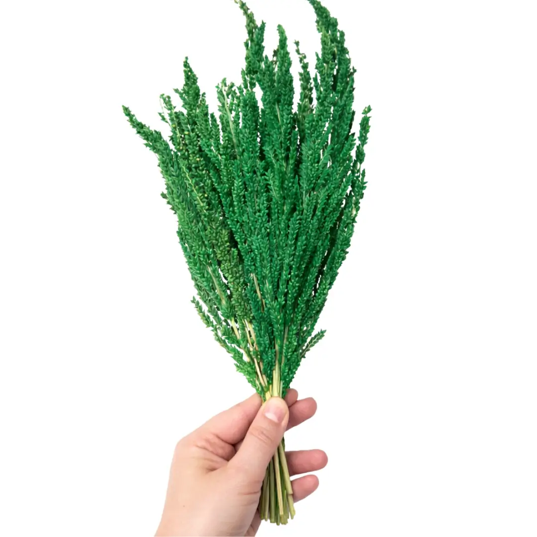 Yeşil phalaris kuru çiçek demeti, doğal tonları sayesinde özellikle sade ve minimalist dekorasyon tarzlarında tercih edilen dekoratif kuru bitkilerden biridir. Doğal görünümü sayesinde hem ev dekorasyonunda hem de tasarım projelerinde oldukça estetik bir görünüm oluşturur.